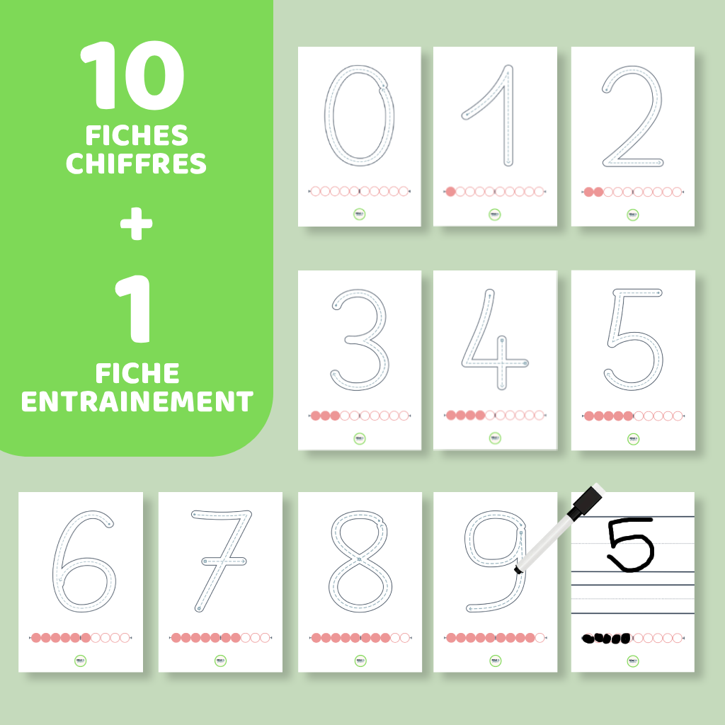 PensĂ© pour les petites mains, ce lot de 11 fiches nomades accompagne les enfants dans lâapprentissage des chiffres de 0 Ă 9, avec une fiche supplĂ©mentaire dâentraĂźnement pour sâexercer Ă volontĂ©.