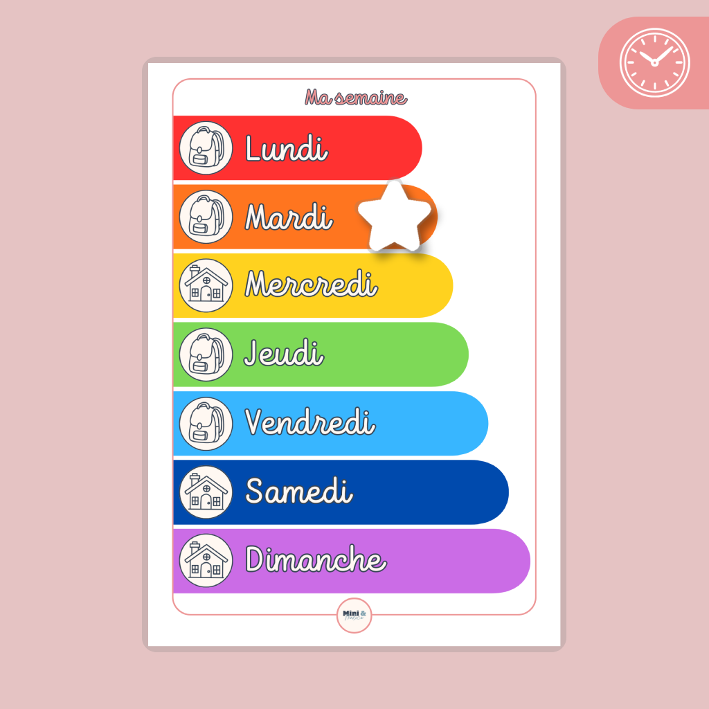 - 1 étoile repositionnable (avec scratch) pour suivre les jours